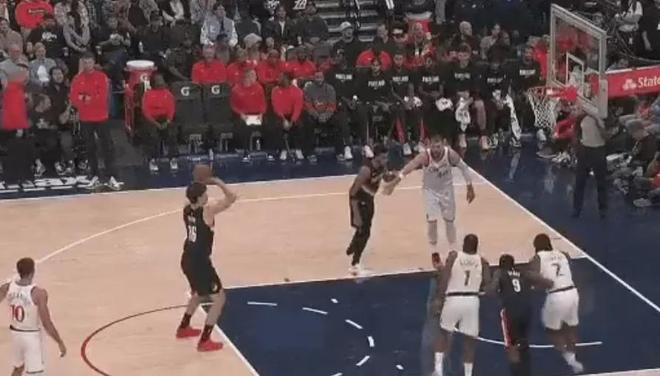 艾顿打了36分钟,17投10中拿下22分15篮板2助攻,也可以说是倾其所有,令人陌生。